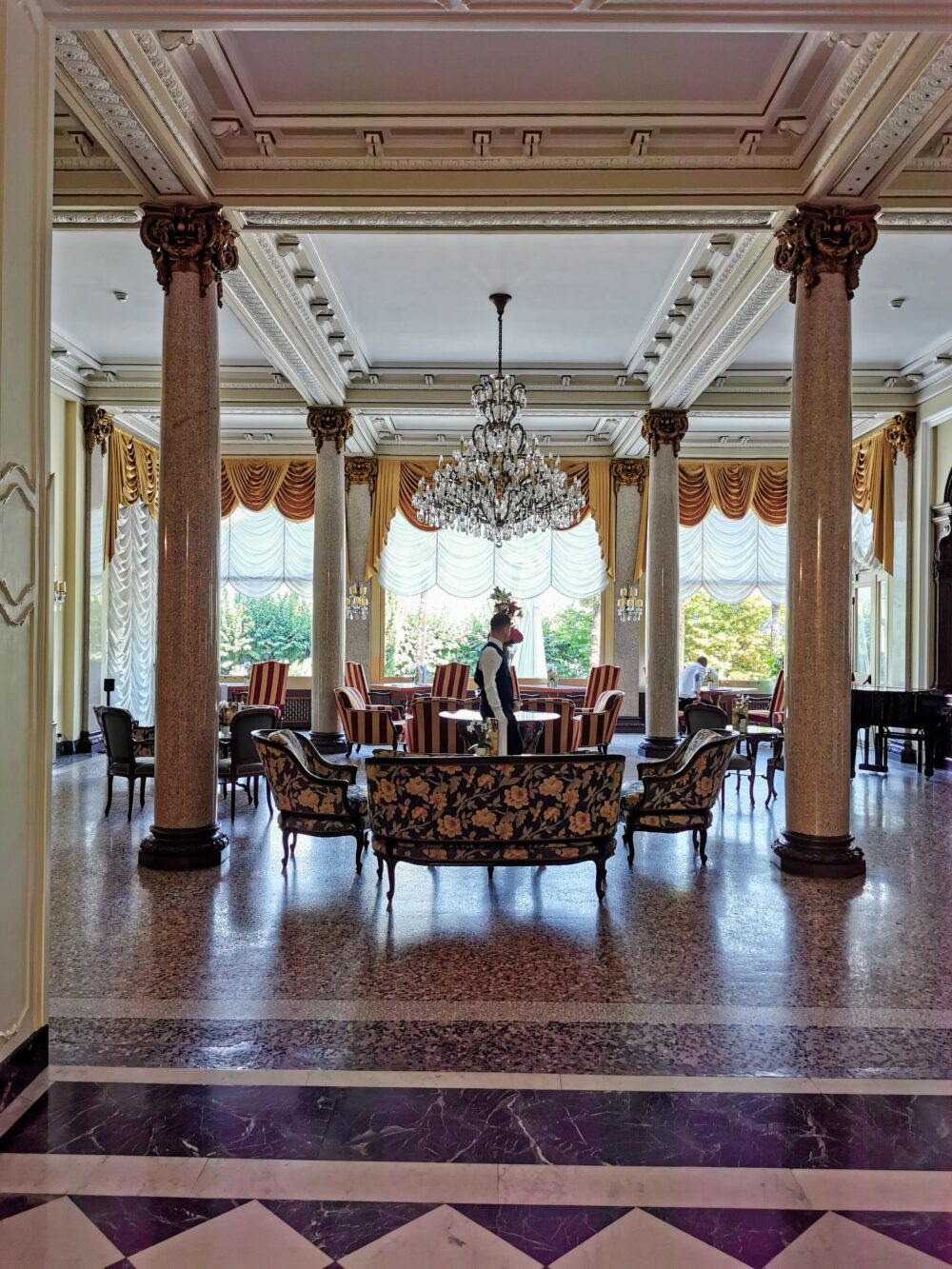 La Veranda is bright and grand. A place from another world. Salvadore made our evening extra special. We loved his spirit, his passion for his work and family-life. The cuisine in the restaurant has a lot of Napoletan notes we were told. We ordered stuffed Zucchini and Risotto to start, a Chateaubriand as a main and Crepes suzettes with Vanilla Ice Cream for dessert (my ever favourite!!) accompanied with prickly Champagne. This place sets the right mood. The Hors d’Oeuvre was Napoletan tomato stew. We weren’t sure whether to eat it with a spoon or fork, but it was scrumptious. We also ate some of that Italian olive Focaccia served with our meals. Have a gaze at the images to admire Salvadore’s flambée and meat cutting- skills.
